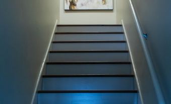 Downstairs you will find a half bath located just before the kitchen, and a sleeper sofa in the living room. A 58" smart TV allows you to view shows you like. Speaking of the kitchen, it comes fully stocked, you just provide the groceries! There is a dining area off the kitchen. We also have a stocked coffee bar for your convenience, for those mornings you don't feel like crossing Jackson Avenue for Starbucks.