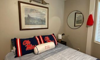 AWESOME LOCATION! Walk to Everywhere! Clean & Sanitized! Enjoy scenic views at our 1st floor condo in a private tree house community only steps from campus! Relax among trees, birds, & nature on a private deck & patio! Walk to Ole Miss games! Guests have access to a private community pool! WIFI internet! The University is literally the property next to the condo complex & the softball field is a stone's throw away! There is no better location if you want to experience everything campus has to offer!About pets:No pets allowed.About checkOut:Check out before 11:00 AM.About children:Children allowed: ages 0-17.About checkIn:Check in after 4:00 PM.About smoking:Smoking is not permitted.About minBookingAge:Minimum age to rent: 21.About events:No events allowed.