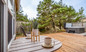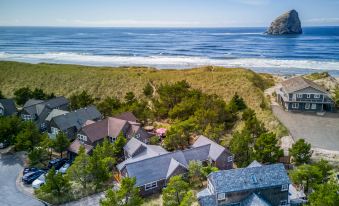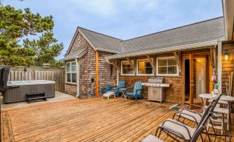 Climb a little sand dune and emerge on the sweeping Pacific City beach to the astonishing sight of Haystack Rock from Barefoot Beach House, a lovely single-level ensconced in shore pines and sand. This light, airy home with vaulted ceilings wraps around a spacious outdoor deck, where you can relax in the sun by day and bask under sunsets and starry skies by night.