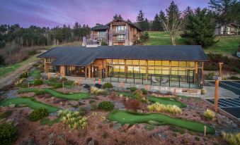 Downstairs, two bedrooms, a bunk room and a king, share a bath. A bonus room lets you relax with TV and a mini-bar, with a view patio right outside. Hop in the car to be at the beach in minutes, whether you want a craft brew at the Pelican Pub as you gaze at Haystack Rock or a quiet stroll down the sandy shore to Bob Straub State Park. Fish or kayak the river, dine in style at Meridian Restaurant or explore the coastal communities to the north and south—in a half hour you can be sampling ice cream at the Tillamook Creamery or seeing a show at the Chinook Winds Casino. Return for a swim and a soak in the clubhouse hot tub, then celebrate the sunset with a front-row seat from Sunset Seawatch.