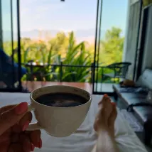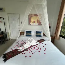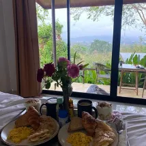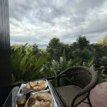 Это абсолютно замечательное место. Если вы остановились в Пае, это место обязательно для посещения. Виды невероятные и абсолютно захватывающие, и, вероятно, лучшие из тех, что я когда-либо видел. Вы будете наслаждаться туманом, покрывающим и рассеивающим горы большую часть дней. Люди, которые управляют этим местом, абсолютно милые. Завтрак был действительно хорош и приносился в ваш номер каждое утро, и вы сами выбирали продукты накануне вечером. Завтракать на балконе каждое утро с видом на долину было потрясающе. Мы принимали ванну на нашем балконе, который я бы рекомендовал взять. Номера просторные и чистые, с большими окнами, чтобы наслаждаться видом из вашей кровати. Также есть крытая общая зона отдыха с террасой, где вы можете купить еду и напитки и насладиться видом. До города нужно немного пройти по крутому склону, но они высадят вас и заберут бесплатно или за плату, если вы не хотите идти пешком. Они также заберут вас и отвезут обратно в аэропорт за определенную плату, но это гораздо безопаснее, чем ехать на автобусе.