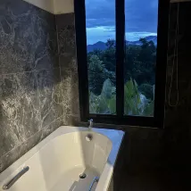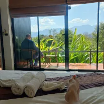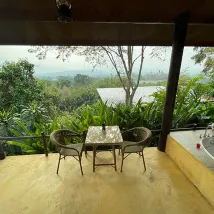 One of the most wonderful view ever had from any balconey, mountains, jungels, birds and butterfly. Feel like away from rest of the world. Great open balconey, charming bungalow, good rainshower, lovely real people. Be back on day