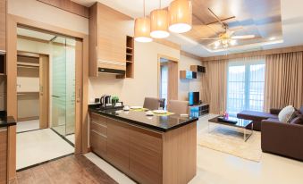 The apartment was beautiful and spacious. The air con in the bedroom was not as good as in the living room which made sleeping slightly uncomfortable initially. The tv only has Thai channels which is a little disappointing. Overall, it’s a beautiful place and the free onsen visit and breakfast were bonuses. The breakfast was a buffet with everything you could imagine. I would recommend this place to anyone visiting the area.
