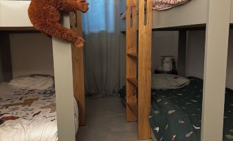 2 bedrooms, 1 with 140x200 mezzanine bed, below 140x190 bed and one bedroom 140x190 bed