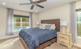 A buddy and I stayed at the house for a fishing trip. The location was great and close to grocery stores, restaurants, and other shopping. The house is only a 30 minute drive or so from Headwaters Lake, and the driveway was big enough for my boat trailer and my SUV. The house itself was spotlessly clean, with a nice big fridge and freezer and easy to use stove and oven. There was a nice pool outside that we didn’t get to take advantage of, but I could see how that could be a lot of fun.