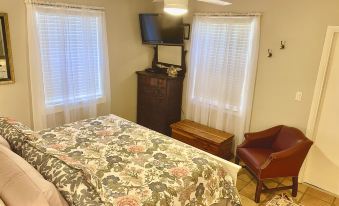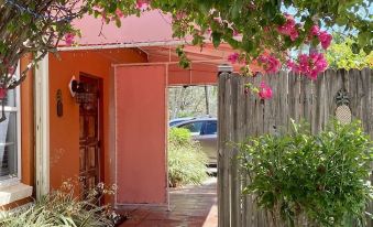 1 bedroom / 1 bath cottage with approx. 650 square feet. Fully furnished living room, with queen sleeper sofa, dining area, bedroom with king-sized bed. Old Florida charm with central AC/heat, ceiling fans in all rooms, Saltillo tile floors throughout. Full kitchen with all appliances, including dishwasher, blender, coffee maker, pots and pans and much more. Shared laundry room (with Unit 2 of duplex) with washer and dryer, laundry soap provided. Large tiled walk-in shower in newly remodeled bathroom.