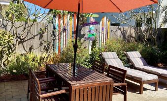Plenty of outdoor space to enjoy dinner with the family after a long day at the beach, or have a quiet cup of coffee relaxing in a chaise. The cottage offers covered patios, propane BBQ grill, secluded back yard, private hot/cold outdoor shower and private off street parking for 2 cars.