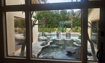 Separate casita with separate outside entrance for caretaker use. Your privacy is assured at all times.About pets:Pets allowed: dogs less than 50 lbs per pet (limit 2 pets total).Security deposit req. Doggie door in Master Bath.About checkOut:Check out before 11:00 AM.About children:Children allowed: ages 0-17.About customRules:Strict Palm Desert noise ordinance between 10PM and 8AM. No loud noise or music outside at any time. Renter responsible for any noise fines..Maximum 6 guests allowed by Palm Desert ordinance. Renter responsible for any violation fees imposed.,Parking in circular drive only. No street parking. One spot at far right side reserved for owner. Casita used by owner via separate gate..About checkIn:Check in after 3:00 PM.About smoking:Smoking is not permitted.About minBookingAge:Minimum age to rent: 25.About events:No events allowed.