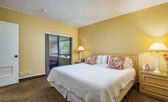 The condo has all of the following amenities: fully equipped kitchen with Keurig coffee maker, living room with new sectional sofa and chair, separate bedroom with king-sized bed, and a full bathroom with 1/2 bath. Towels, linens, pantry items, pots & pans and dishware are provided.