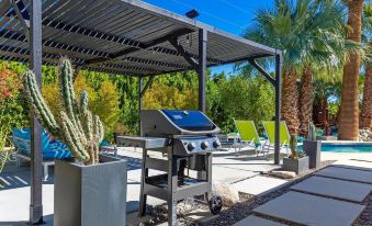 Fun. Bright. Lots of light. This glamorously nostalgic, yet very current vacation home, captures the swank & sophisticated vibe of Palm Springs yesteryear while being very next century at the same time. The mid-mod inspired furnishings reinterpret the iconic 1960s style without sacrificing comfort. Spectacular walls of glass let the light pour in - revealing the fabulous sun-drenched pool yard. The kitchen, living and dining areas are all open to each other, perfect for spending time with your entire group. Everything has been reimagined for the way we live today - with high-speed internet, 4 flat screen televisions, high performance climate control and a well-stocked kitchen featuring upgraded stainless-steel appliances.