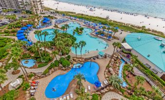 The luxurious Edgewater Beach & Golf Resort is Panama City Beach's ONLY full-service resort. Beachside you’ll find a full restaurant, tiki bar, huge oceanside lagoon pool, kids splash area, Starbucks, market, ice cream parlor, 4 hot tubs, water sports/activities, beach chair service (pool and beach), and more. Across the resort pedestrian bridge is a 9-hole golf course and Pro Shop. Enjoy complimentary access to a range of top-tier amenities at the resort, including the fitness center, basketball court, 11 Pools (10 heated seasonally), 10 plexicushion tennis courts, 10 shuffleboard, and 5 pickleball courts.