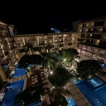 Отель Savea Bay расположен в отличном месте. Напротив торгового центра Ayala Mall и парка развлечений City of Dreams. Я не уверен, идёт ли ещё строительство, потому что слышу шум. Я также заметил изменения в подаче завтрака. В первый раз, когда я был здесь, завтрак приносили прямо в номер. Сегодня утром нам подали завтрак по системе «шведский стол» в комнате с четырьмя круглыми столами и восемью стульями у каждого. Казалось, что это временное решение, и не было особой приватности. Возможно, это изменится. Мне понравилось, что в номерах есть кухня с плитой, микроволновой печью и холодильником. И что кровати большие — не двуспальные.