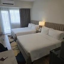 Мы прекрасно провели 4 ночи в отеле Savea. Даже несмотря на то, что я спал мало, я все равно сплю очень хорошо. Нас повысили до двухместного номера Baysuite с двуспальной кроватью размера «queen-size». Номер хороший, со встроенной индукционной плитой, столом и кухонными принадлежностями, большим холодильником и микроволновой печью. Ванная комната также большая и со всеми удобствами. Что важно, так это доступность ко многим местам, таким как торговые центры Ayala Malls, Landmark, Moa и даже аэропорт NAIA. Район также тихий по ночам. Это место будет одним из моих приоритетных выборов, когда я вернусь в следующий раз.