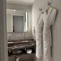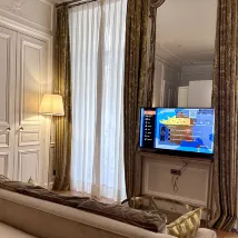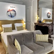 Сначала плюсы: в целом, удобства первоклассные по сравнению с большинством парижских отелей, элегантные, французские, с отличной звукоизоляцией. Общественные зоны, хоть и небольшие, очаровательны и компактны. Чистота заслуживает лишь 4 из 10; некоторых мелочей не хватает, например, волос, оставленных на диване, и приветственного бокала с шампанским, который остался с первого дня, но так и не был убран за четыре дня. Постельное белье высокого качества, парфюм для ванны Guerlain (лично мне показался слишком резким), тапочки мягкие, а мини-бар бесплатный…