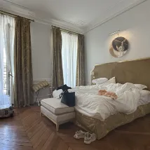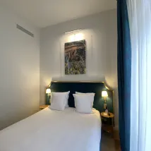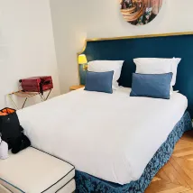 Минусы: Бронирование полулюкса отличалось от фотографий на платформе бронирования. В номере не было трёхместного дивана, только пуф у изножья кровати и не было ванной комнаты с окном. Так называемый люкс представлял собой просто ванную комнату со звуконепроницаемой дверью между ванной и номером. Наш номер выходил окнами на улицу, а мусоровозы в Париже по утрам очень шумные. Мы подтвердили на стойке регистрации, что нам нужен тихий номер с видом во двор, и нам пообещали заменить его в последний день. Сбор вещей был немного утомительным, но на следующий день у нас была поездка, и переезжать не пришлось.