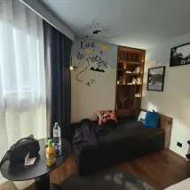 Арт-отель. Расположение отличное — очень близко к железнодорожному вокзалу. Поблизости также есть Carrefour, McDonald's и целая улица с блинными. В номере имеется чайник и кофемашина. Возможность выпить горячей воды — это просто находка! Однозначно рекомендую!