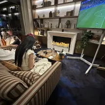 На первом этаже отеля есть бар, который использовался для просмотра матчей каждый день во время чемпионата Европы. Обслуживание в баре было довольно хорошим, и я настоятельно рекомендую его. Кроме того, персонал на стойке регистрации был немного медлительным, но очень внимательным и профессиональным.