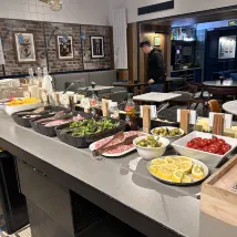 На завтрак большой выбор, но гигиена не очень хорошая. Посуда не очень чистая.