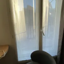 Возможно, это потому, что в Париже относительно влажно. В номере было немного сыро. Окна выходили во двор, света было мало, а кондиционер был недостаточно холодным.