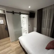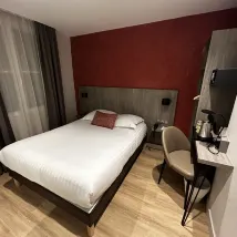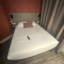 В целом, номер был хороший, хотя и тесноватый, но планировка вполне приемлемая. Чистота была превосходной, хотя ванная комната была маленькой и в ней было трудно наклоняться. Телевизионные каналы были непонятными, все на французском. Девушка на стойке регистрации была очень приветлива, а поблизости много ресторанов. Северный вокзал находится примерно в десяти минутах ходьбы. Завтрак тоже был приемлемым, учитывая, что это бюджетный отель. В целом, это хороший отель.