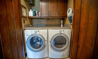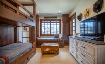 Overlooking the great-room, the well-appointed kitchen features top-of-the-line appliances and adjacent walk-out deck with grill. Bring your favorite pods, grinds or beans — we offer a Keurig, a Nespresso original line, a drip and a coffee grinder. A king suite, a queen bedroom, and a bunk room with four twin beds (built-in bunk beds with top, bottom and trundle and a separate day bed) all have ensuite bathrooms and smartTV's. The bunk room is also furnished with games to keep the kids busy when they aren’t out-and-about.