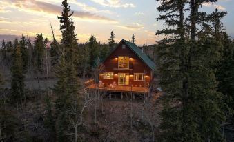 2 decks with chairs, dining set, gas fire pit, gas grill, sweeping landscape views, peaceful high-alpine surroundings