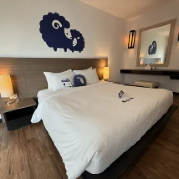 Интересный дизайн с овечками, за них и берут деньги. А так обычный отель. Небольшой бассейн. Находится в удобном месте на 3 улице. Благодаря этому не так шумно. Завтраки простые но выбор есть. Видеообзор смотрите на you tube канале Pikart Travel