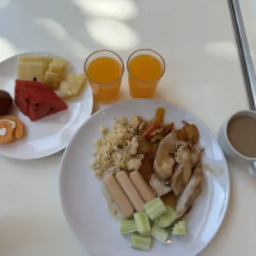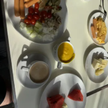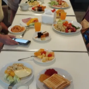 Очень понравились завтраки, некоторые позиции повторялись, но часть блюд менялась. Можно всегда найти что-то для себя. Есть нарезки фруктов и ассорти. Есть кофемашина, но возле неё всегда большие очереди.