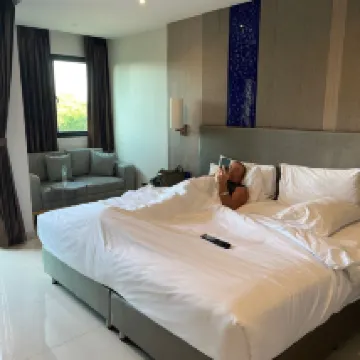 Очень рекомендую. Отель новый, присутствуют некие новые технологии в виде сенсорного звонка и большой плазменной панели со смарт тв. До моря идти 3-5 минут, но пляж грязный, как и само море. Рядом есть все необходимое, 7/11, кафе, массаж и тук-туки. Завтраки одинаковые, но выбора достаточно. Очень приветливый и отзывчивый персонал, им бы поставила все 10 из 5.