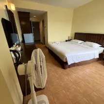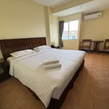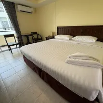 Отель находится довольно далеко от ночных улиц и пляжа — примерно в 15 минутах ходьбы. Он расположен на оживленной улице, поэтому в первую ночь я не мог хорошо спать из-за шума. Я попросил на ресепшене поменять номер, и персонал очень любезно помог мне это сделать за символическую плату. Номер был чистым, но немного староват, особенно ванная комната. Рядом с отелем есть большой фуд-корт с местной едой по очень доступным ценам.