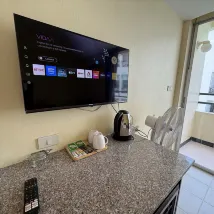 Оснащение немного устаревшее, но наличие сейфа – это большой плюс: не нужно носить с собой много наличных и документов, когда выходишь. Персонал на ресепшн очень любезный, можно без проблем объясниться на простом английском. Расположение удобное: недалеко от порта и пешеходной улицы, всё в шаговой доступности. Вызвать такси также не проблема. Рядом с отелем есть бадминтонный клуб, где можно бесплатно припарковать машину.