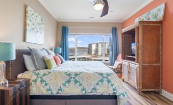 The second bedroom features a queen-sized bed, nightstands, and a closet.
