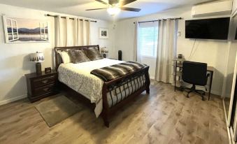 Primary bedroom : Downstairs with a Private work area with computer desk, Queen size bed, Smart Tv, fast WIFI, full laundry room, full bathroom, large double closet, own HVAC w/ temperature control and dresser.