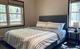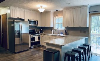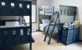 Beautiful home with spacious seating area in the family room and fireplace to stay cozy. Fully stocked kitchen with all the necessary essentials to cook for everyone, and a coffee station to start the day! Downstairs boasts a primary suite, with a California King Bed, large walk in closet, optional pack and play if needed, and a bathroom with washer and dryer access. Upstairs you will find a bunk room with 2 sets of twin bunk beds full of ample books, puzzles, and games to keep any little ones occupied. Down the hall is another full bath and the last bedroom with a Queen Bed.