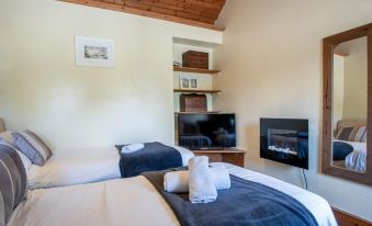 As you step inside, you will be welcomed into a generously sized lounge area to your right, fitted with comfortable seating that invites relaxation. Here, you can unwind in front of the oil-burning fireplace, while enjoying your favourite shows on the smart TV.