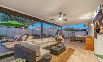 Welcome to The Modern Cactus! This fun, family-friendly, stylish retreat is a true desert oasis! Located only minutes away from Westgate Entertainment District, the Arizona Cardinals’ home stadium, Spring Training fields, world class golf courses and endless outdoor adventures, you are central to all the Valley’s most popular destinations. Please come enjoy our beautiful NEW furnishings, a heated pool, luxury spa and a cozy outdoor living/dining space - This is desert living as its finest!
