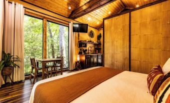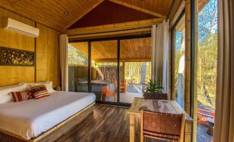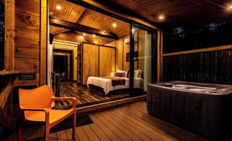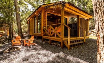 Modeled after the Safari Lodges in Africa, our Kenya Safari Lodge is a truly unique experience. Our African touches will transport you to a far away place. Soak in the private hot tub surrounded by nature or relax in the comfortable king size bed. Couples are sure to reconnect at this retreat located in our adults only area of Rock Creek.
