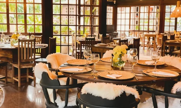 Когда вы проголодаетесь, зайдите в ресторан. Тем, кому не хочется покидать свой номер, этот агротуристический комплекс также предлагает обслуживание номеров. В конце дня вы можете расслабиться в баре/лаунже или баре у бассейна. Бесплатный завтрак (шведский стол) предлагается ежедневно с 8:00 до 10:30.