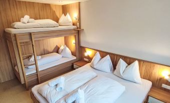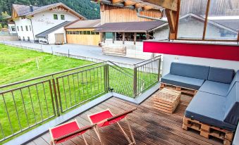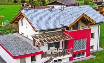 Pettneu 6 km from St. Anton: Modern, cosy apartment block "Bella Monte", surrounded by meadows. In the district of Reit, in a quiet, sunny position. For shared use: property, garden. Patio. In the house: storage room for skis, central heating system, ski boot dryer. Parking. Grocery 1.3 km, restaurant 1 km, bus stop 370 m, indoor swimming pool 2.2 km. Gondola lift 7 km, skisport facilities 7 km, ski bus stop 370 m, ski school 7 km, cross country ski track 10 m. Please note: ski bus (free of charge). Free ski bus service to the ski region St. Anton. Please note: Additional accommodations can be booked. "Malfon", 5-room apartment 122 m2, on the upper ground floor. Spacious and bright, comfortable and cosy furnishings: entrance hall. 1 double bedroom with satellite TV (flat screen). 2 rooms, each room with 1 x 2 bunk beds, 1 double bed and satellite TV (flat screen). Living/dining room with open-hearth fireplace (only for decoration), dining nook and satellite TV (flat screen). Exit to the terrace. Kitchen (oven, dishwasher, 4 ceramic glass hob hotplates, toaster, kettle, microwave, electric coffee machine). Shower, shower/WC, sep. WC. Heating. Parquet floors. Large terrace 11 m2, south facing position. Terrace furniture. Beautiful view of the mountains. Facilities: Internet (WiFi, free). Parking (3 cars). Please note: suitable for families. Fridge without freezer, non-smokers only.