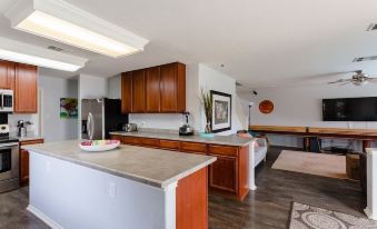 We had adults, teens, and children stay in the home and there was plenty of space for everyone. The house kept everyone entertained with the various games, arcade, pool table and of course the outdoor pool and hot tub. The kitchen was fully stocked with everything we needed.