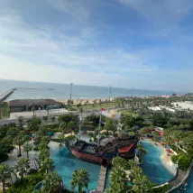 Отель сам по себе отличный, мягкие и удобные кровати, отличный завтрак. Но расположен он ужасно, рядом ничего толкового нет. Цирк, аквапарк, сафари парк- это просто для галочки, делать там нечего абсолютно. Всего два магазина и в них вообще нет выбора. Поесть можно только в отеле и пару заведений за пределами, но цены там очень завышены из-за отсутствия конкуренции. Выше отеля построены дома, но они пустые . Ощущение что ты попал в какой-то искусственный город, где нет людей. На самом деле людей тут реально нет😅 пляж не самый лучший, находится через дорогу.