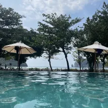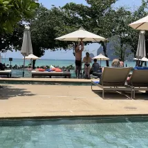В последние дни друзья часто спрашивают меня о проживании на Пхи-Пхи. Прожив здесь четыре ночи, я лично считаю, что эта вилла с бассейном предлагает отличное соотношение цены и качества. На первом этаже находится гостиная и бассейн, на втором — спальня и ванная комната. Выход прямо на пляж. Однако есть один существенный недостаток: на пляже почти каждую ночь шумно. Но для меня это приемлемо, так что в целом всё очень хорошо. Мы прожили здесь две недели. Завтраки каждый день немного менялись, а мини-бар был бесплатным. Мне очень понравилось, и в следующий раз я снова выберу это место.