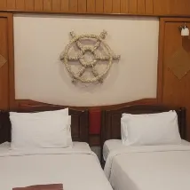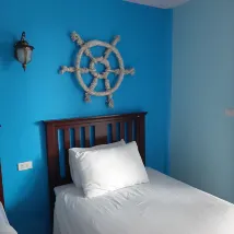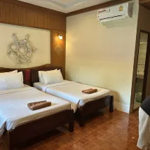 Отель удобно расположен недалеко от центра города, пирса и пляжей острова. В номере есть удобные кровати, прекрасная терраса со столом и стульями, чайник и все необходимые туалетные принадлежности. Wi-Fi работает хорошо. Уборка и смена полотенец производятся ежедневно.
