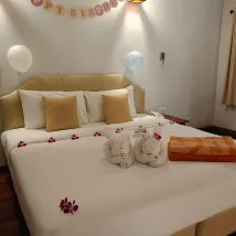 Замечательный отель,очень ухоженная территория!Чисто, все убирают , поливают, ухаживают.Номер просторный, ванная комната: две душевые лейки простая и тропический душ,вода горячая постоянно была + отдельно кран для ног.Наподнение в ванной очень удивило : зубные щётки+паста, палочки,душевые шапочки, пилка для ногтей, бритвенный станок, расческа, набор для шитья.Для 3 звёзд это суперр.Кровать огромная,но матрас жёсткий, попросили топпер,принесли без вопросов.Постельное белье и полотенца реально меняли каждый день!Бесплатный мини бар ежедневно две банки колы и 2 банки апельсинового фреш.Большая открытая терраса.Питание нормальное,но кофемашины нет.Обслуживаеме номера на высоте ,даже цветы ставили,из полотенец то лебедей крутили, то кроликов.Море кристальное с кучей рыбок.Отель рекомендуем и обязательно вернёмся.