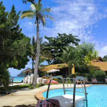 Идеальное место!! Жили три дня, к сожалению... Отель просто сказка, все ребята кто обеспечивают отдых молодцы!! Отель на склоне в ухоженном саду-джунгли, много мелких деталей, которые позитивно западают в душу. Для удобства от ресепшена - бассейнов - ресторана ходит бесплатный шатал, так что если нет желания погулять вверх по склону, то вас подвезут. Также бесплатный трансфер от пирса до отеля при заселении и при выезде аналогично.