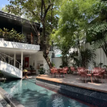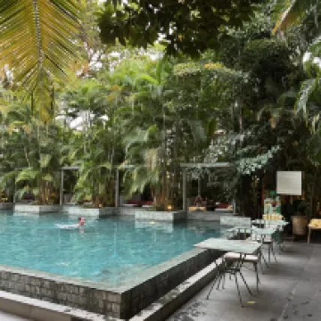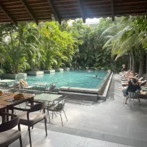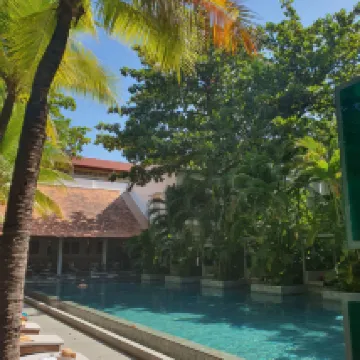 Замечательный отель в самом сердце Пномпеня, расположение возле Королевского дворца, в 20 минутах пешком от барной улицы Bassac Street. Среди шумного города вы попадаете в зелёный оазис, чудесный тропический сад. Номер для семьи из 4 человек немного маловат, и не очень удобны стеклянные двери в туалет и душ. Но для непродолжительного пребывания нормально. Уборка хорошая, полотенца меняют, только если положить их на пол. В номере есть всё необходимое. По просьбе нам предоставили бокалы для вина. В комнате высокая влажность, а в саду много комаров, это не вина отеля, но гостям следует иметь в виду. Завтраки в бассейна очень разнообразные и вкусные. Большой выбор фруктов. Бассейн достаточно большой, вода прохладная, полотенца предоставляются у бассейна. В баре можно заказать напитки и мороженое. Очень красивый отель и хороший сервис))