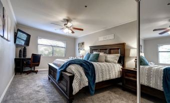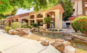 You’ll find a fully stocked kitchen with everything you’ll need to prepare a meal including a full set of cookware, dishes, silverware, and glasses. Master bedroom has a comfortable King and 2 Queen beds in the roomy second Bedroom. Free WiFi, Large Smart Televisions with full cable including sports package. Wonderful walk in closets that make a longer term stay especially comfortable. And for winter, the gas fireplace is just right for both ambience and a little extra heat. The property is adjacent to the renowned Biltmore Golf Course and within 5 minutes drive to several other golf courses. Heated community pool (86 degrees year round), spa, and a fitness gym & sauna. Easy access with a designated space in the underground parking garage. No stairs needed! All elevator access if you desire. Over the courtyard, near to the pool but far enough for peace & quiet. Serene, spacious setting. Walk next door for groceries, Starbucks, fantastic restaurants and more. Our condo is close to all the popular shopping, dining, hiking and biking areas. A quick 10 minute drive to Sky Harbor Airport, Downtown Phoenix or Old Town Scottsdale. Perfect for all your vacation needs or business travels.About pets:No pets allowed.About checkOut:Check out before 11:00 AM.About children:Children allowed: ages 0-17.About checkIn:Check in after 4:00 PM.About smoking:Smoking is not permitted.About minBookingAge:Minimum age to rent: 26.About events:No events allowed.