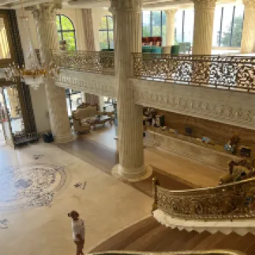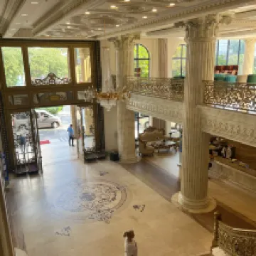 Пафосный, дешевые материалы. Остановился, так как якобы он на уровне Шератона, но ниже в цене, это не так. Завтраки хуже.