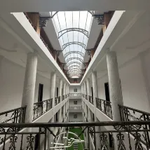 Видно, что архитектура отеля в свое время была задумана с размахом - просторный вестибюль, высокие этажи, просторные по площади номера, центральный атриум, большой бассейн.