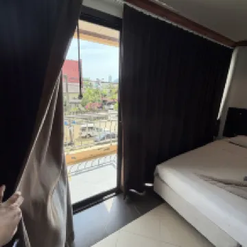 Нам отель понравился, жили на 4 этаже, номер чистый и приятный, постельное белье чистое без пятен. Мебель немного пошарпана, но мы жили 5 дней и нас все устроило, окна панорама, на балконе столик и два стула, чайник и холодильник есть. Так же можно заряжать свои смарты без переходника это плюс! Расположение отличное, на улице тихо ночью, но при этом знаменитая улица банглароут находится в пешей доступности, до пляжа тоже близко минут 10! В общем и целом, все отлично и нам все понравилось! Залога нет! Фото сделаны уже на выезде из отеля!